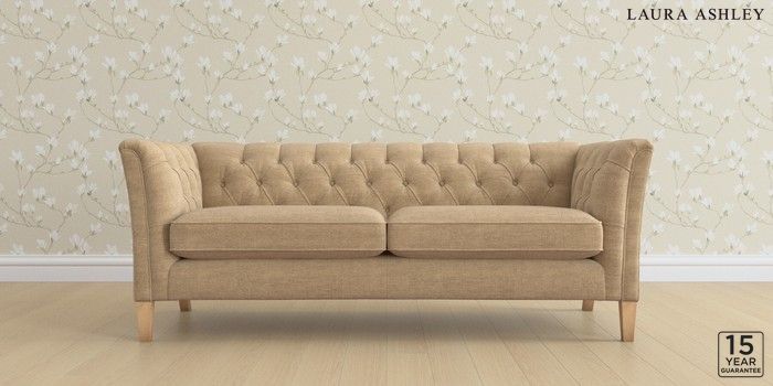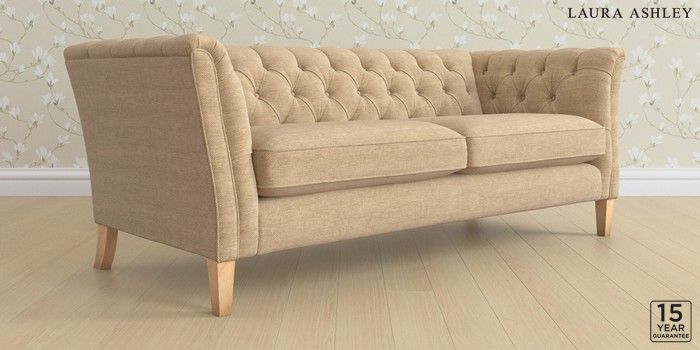 6.12.1 Buy Chatsworth Button Back by Laura Ashley 3 Seater Sofa Edwin Chenille Gold Natural Straight Mid - Light Oak from the Next UK online shop Click here to use our accessible website