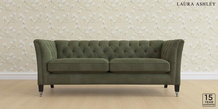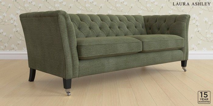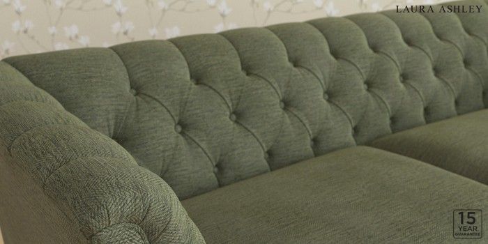 6.12.13 Buy Chatsworth Button Back by Laura Ashley 3 Seater Sofa Edwin Chenille Hedgerow Green Straight Chrome Castor - Black from the Next UK online shop Click here to use our accessible website