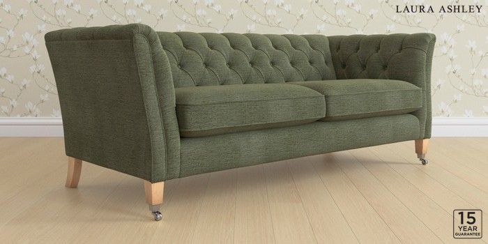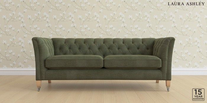 6.12.13 Buy Chatsworth Button Back by Laura Ashley 3 Seater Sofa Edwin Chenille Hedgerow Green Straight Chrome Castor - Light Oak from the Next UK online shop Click here to use our accessible website