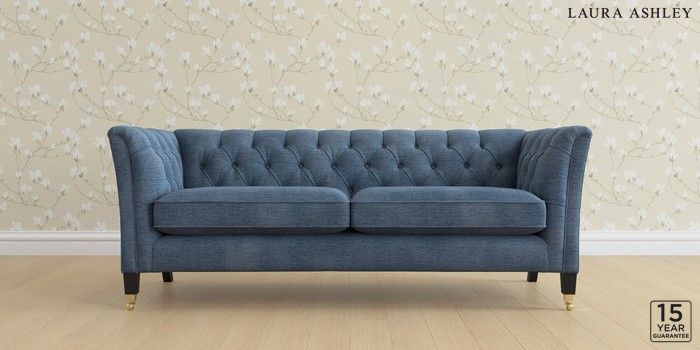 6.12.1 Buy Chatsworth Button Back by Laura Ashley 3 Seater Sofa Edwin Chenille Seaspray Blue Straight Brass Castor - Black from the Next UK online shop Click here to use our accessible website