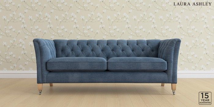 6.12.1 Buy Chatsworth Button Back by Laura Ashley 3 Seater Sofa Edwin Chenille Seaspray Blue Straight Chrome Castor - Light Oak from the Next UK online shop Click here to use our accessible website
