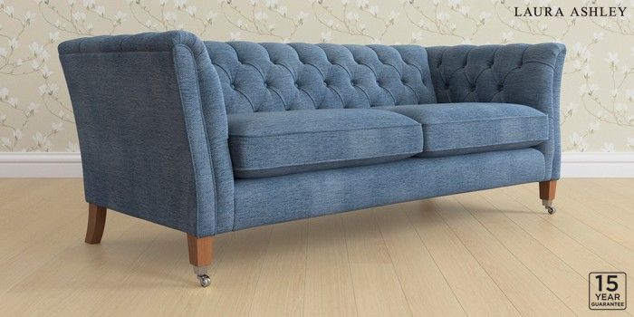 6.12.1 Buy Chatsworth Button Back by Laura Ashley 3 Seater Sofa Edwin Chenille Seaspray Blue Straight Chrome Castor - Teak from the Next UK online shop Click here to use our accessible website
