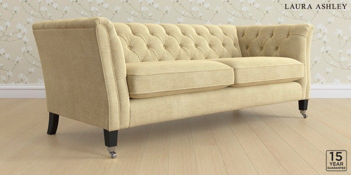 6.12.13 Buy Chatsworth Button Back by Laura Ashley 3 Seater Sofa Edwin Chenille Truffle Natural Straight Chrome Castor - Black from the Next UK online shop Click here to use our accessible website
