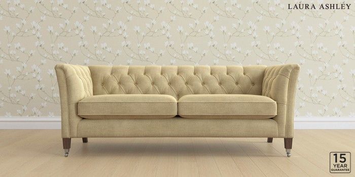 6.12.13 Buy Chatsworth Button Back by Laura Ashley 3 Seater Sofa Edwin Chenille Truffle Natural Straight Chrome Castor - Chestnut from the Next UK online shop Click here to use our accessible website
