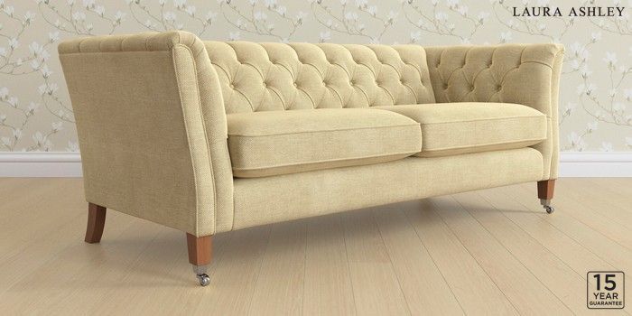 6.12.13 Buy Chatsworth Button Back by Laura Ashley 3 Seater Sofa Edwin Chenille Truffle Natural Straight Chrome Castor - Teak from the Next UK online shop Click here to use our accessible website
