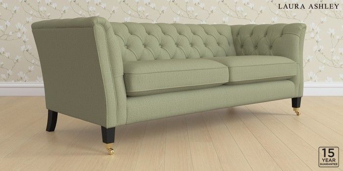 6.12.1 Buy Chatsworth Button Back by Laura Ashley 3 Seater Sofa Edwin Herringbone Hedgerow Green Straight Brass Castor - Black from the Next UK online shop Click here to use our accessible website