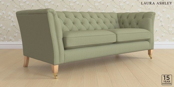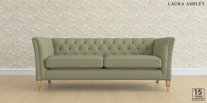 6.12.1 Buy Chatsworth Button Back by Laura Ashley 3 Seater Sofa Edwin Herringbone Hedgerow Green Straight Brass Castor - Light Oak from the Next UK online shop Click here to use our accessible website