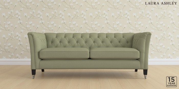 6.12.1 Buy Chatsworth Button Back by Laura Ashley 3 Seater Sofa Edwin Herringbone Hedgerow Green Straight Chrome Castor - Black from the Next UK online shop Click here to use our accessible website