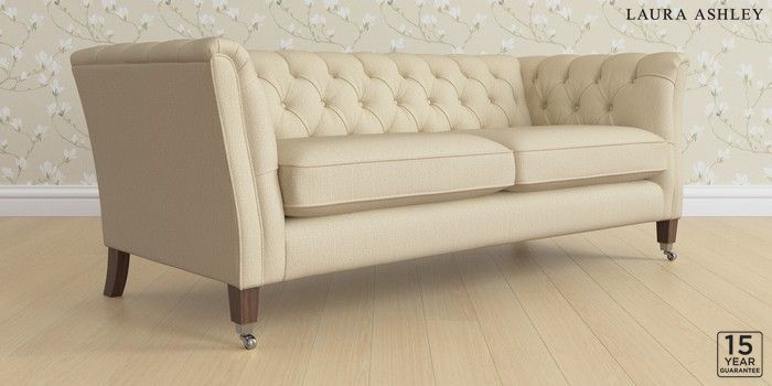 6.12.1 Buy Chatsworth Button Back by Laura Ashley 3 Seater Sofa Edwin Herringbone Natural Straight Chrome Castor - Chestnut from the Next UK online shop Click here to use our accessible website