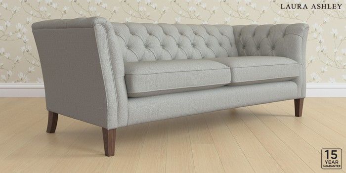 6.12.1 Buy Chatsworth Button Back by Laura Ashley 3 Seater Sofa Edwin Herringbone Pale Steel Grey Straight Mid - Chestnut from the Next UK online shop Click here to use our accessible website
