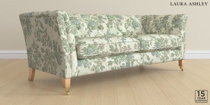 6.12.1 Buy Chatsworth Button Back by Laura Ashley 3 Seater Sofa Ellerby Seaspray Blue Straight Brass Castor - Light Oak from the Next UK online shop Click here to use our accessible website