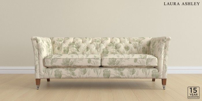 6.12.1 Buy Chatsworth Button Back by Laura Ashley 3 Seater Sofa Gosford Weave Sage Green Straight Chrome Castor - Teak from the Next UK online shop Click here to use our accessible website
