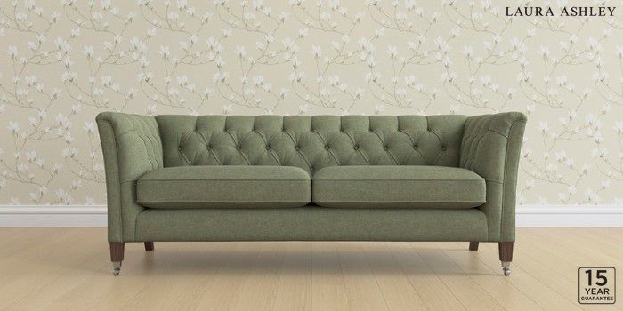 6.12.1 Buy Chatsworth Button Back by Laura Ashley 3 Seater Sofa Harley Moss Green Straight Chrome Castor - Chestnut from the Next UK online shop Click here to use our accessible website