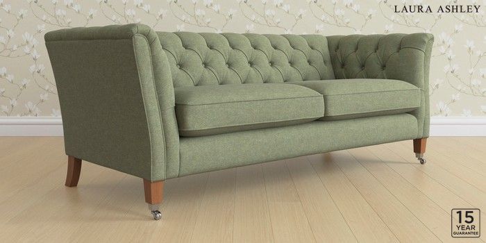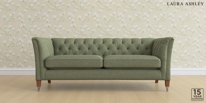 6.12.1 Buy Chatsworth Button Back by Laura Ashley 3 Seater Sofa Harley Moss Green Straight Chrome Castor - Teak from the Next UK online shop Click here to use our accessible website