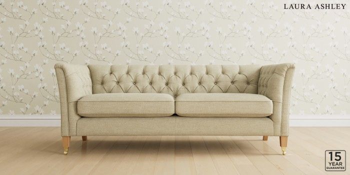 6.12.1 Buy Chatsworth Button Back by Laura Ashley 3 Seater Sofa Harley Natural Straight Brass Castor - Light Oak from the Next UK online shop Click here to use our accessible website