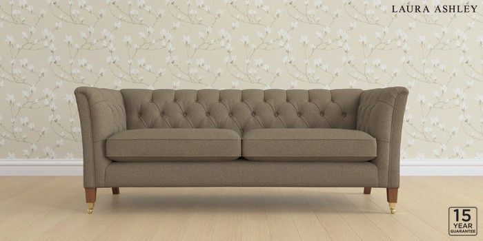 6.12.1 Buy Chatsworth Button Back by Laura Ashley 3 Seater Sofa Harley Truffle Natural Straight Brass Castor - Teak from the Next UK online shop Click here to use our accessible website