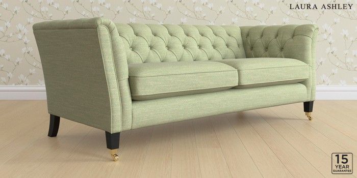 6.12.1 Buy Chatsworth Button Back by Laura Ashley 3 Seater Sofa Kinsham Hedgerow Green Straight Brass Castor - Black from the Next UK online shop Click here to use our accessible website