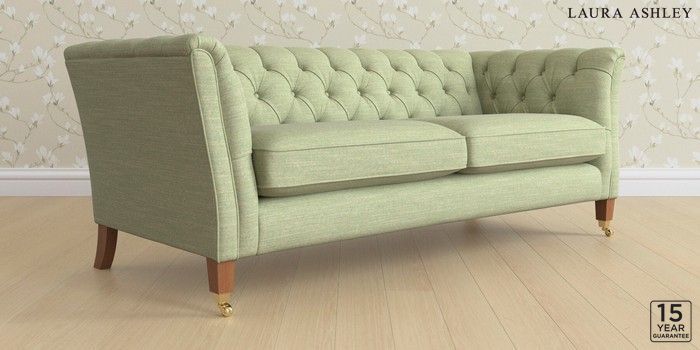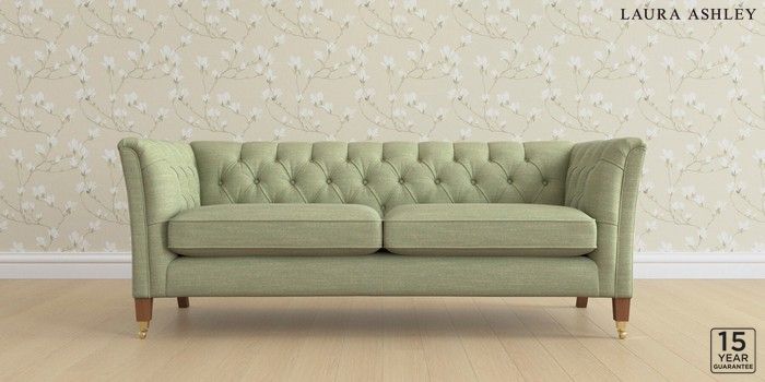6.12.1 Buy Chatsworth Button Back by Laura Ashley 3 Seater Sofa Kinsham Hedgerow Green Straight Brass Castor - Teak from the Next UK online shop Click here to use our accessible website