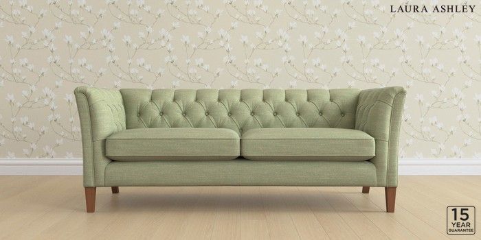 6.12.13 Buy Chatsworth Button Back by Laura Ashley 3 Seater Sofa Kinsham Hedgerow Green Straight Mid - Teak from the Next UK online shop Click here to use our accessible website