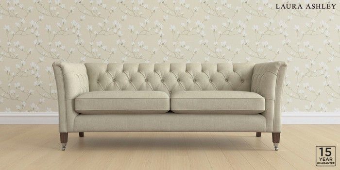 6.12.13 Buy Chatsworth Button Back by Laura Ashley 3 Seater Sofa Kinsham Natural Straight Chrome Castor - Chestnut from the Next UK online shop Click here to use our accessible website