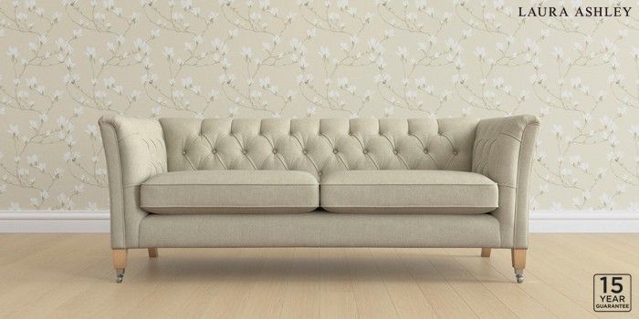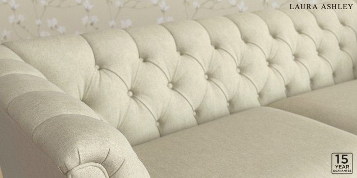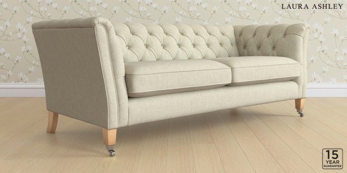 6.12.13 Buy Chatsworth Button Back by Laura Ashley 3 Seater Sofa Kinsham Natural Straight Chrome Castor - Light Oak from the Next UK online shop Click here to use our accessible website