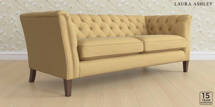6.12.1 Buy Chatsworth Button Back by Laura Ashley 3 Seater Sofa Kinsham Ochre Yellow Straight Mid - Chestnut from the Next UK online shop Click here to use our accessible website