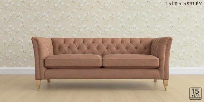 6.12.13 Buy Chatsworth Button Back by Laura Ashley 3 Seater Sofa Kinsham Rust Orange Straight Brass Castor - Light Oak from the Next UK online shop Click here to use our accessible website