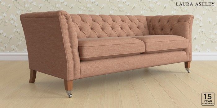 6.12.13 Buy Chatsworth Button Back by Laura Ashley 3 Seater Sofa Kinsham Rust Orange Straight Chrome Castor - Teak from the Next UK online shop Click here to use our accessible website
