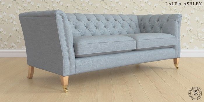 6.12.1 Buy Chatsworth Button Back by Laura Ashley 3 Seater Sofa Kinsham Seaspray Blue Straight Brass Castor - Light Oak from the Next UK online shop Click here to use our accessible website