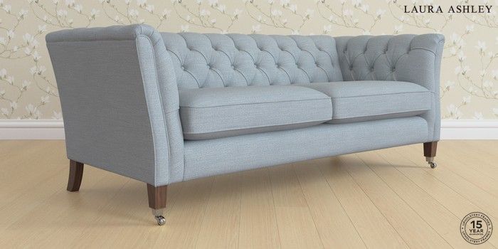 6.12.1 Buy Chatsworth Button Back by Laura Ashley 3 Seater Sofa Kinsham Seaspray Blue Straight Chrome Castor - Chestnut from the Next UK online shop Click here to use our accessible website