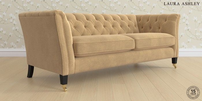6.12.1 Buy Chatsworth Button Back by Laura Ashley 3 Seater Sofa Lundar Chenille Caramel Natural Straight Brass Castor - Black from the Next UK online shop Click here to use our accessible website