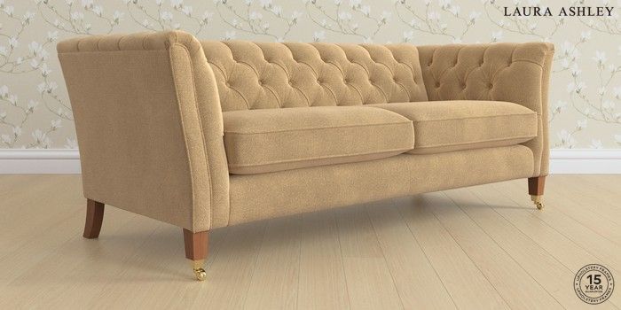 6.12.1 Buy Chatsworth Button Back by Laura Ashley 3 Seater Sofa Lundar Chenille Caramel Natural Straight Brass Castor - Teak from the Next UK online shop Click here to use our accessible website