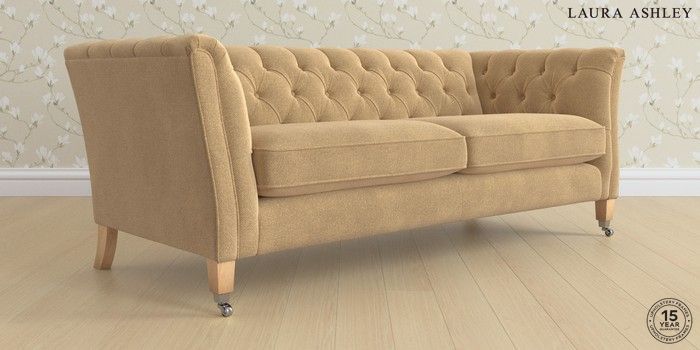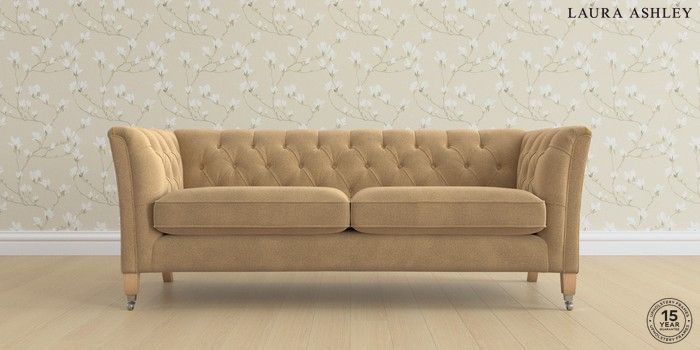 6.12.1 Buy Chatsworth Button Back by Laura Ashley 3 Seater Sofa Lundar Chenille Caramel Natural Straight Chrome Castor - Light Oak from the Next UK online shop Click here to use our accessible website