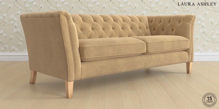 6.12.1 Buy Chatsworth Button Back by Laura Ashley 3 Seater Sofa Lundar Chenille Caramel Natural Straight Mid - Light Oak from the Next UK online shop Click here to use our accessible website