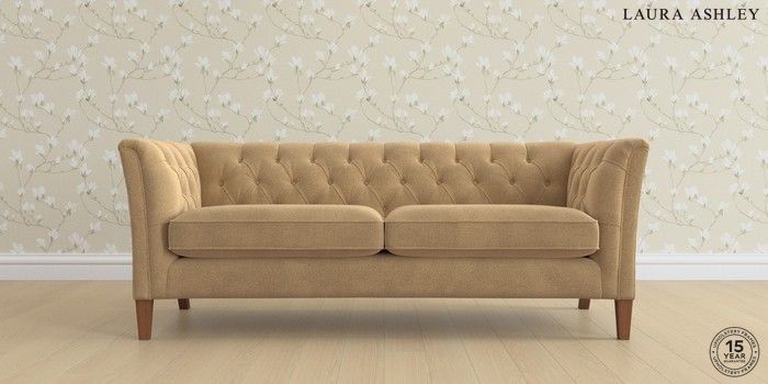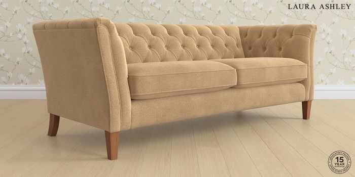 6.12.1 Buy Chatsworth Button Back by Laura Ashley 3 Seater Sofa Lundar Chenille Caramel Natural Straight Mid - Teak from the Next UK online shop Click here to use our accessible website