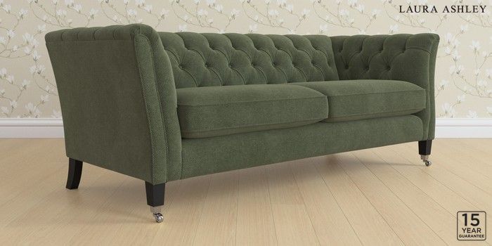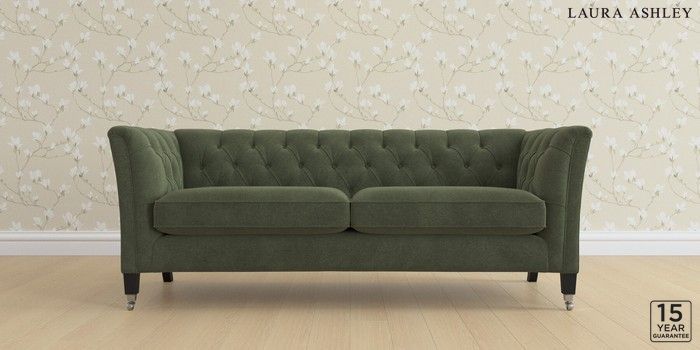 6.12.13 Buy Chatsworth Button Back by Laura Ashley 3 Seater Sofa Lundar Chenille Ivy Green Straight Chrome Castor - Black from the Next UK online shop Click here to use our accessible website