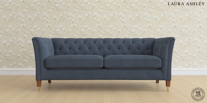 6.12.1 Buy Chatsworth Button Back by Laura Ashley 3 Seater Sofa Lundar Chenille Navy Blue Straight Brass Castor - Teak from the Next UK online shop Click here to use our accessible website