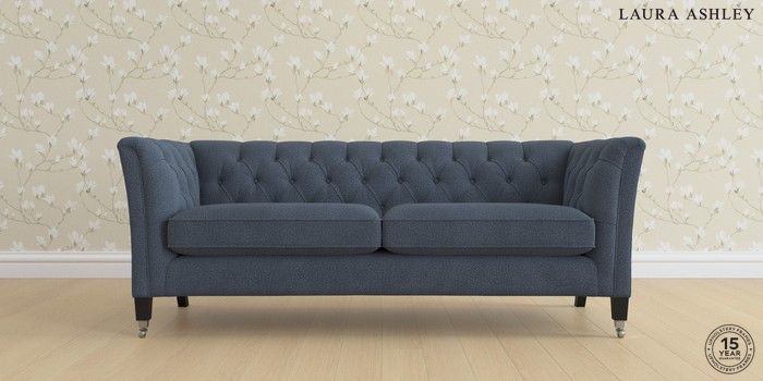 6.12.1 Buy Chatsworth Button Back by Laura Ashley 3 Seater Sofa Lundar Chenille Navy Blue Straight Chrome Castor - Black from the Next UK online shop Click here to use our accessible website