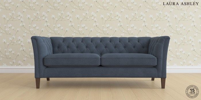 6.12.1 Buy Chatsworth Button Back by Laura Ashley 3 Seater Sofa Lundar Chenille Navy Blue Straight Mid - Chestnut from the Next UK online shop Click here to use our accessible website