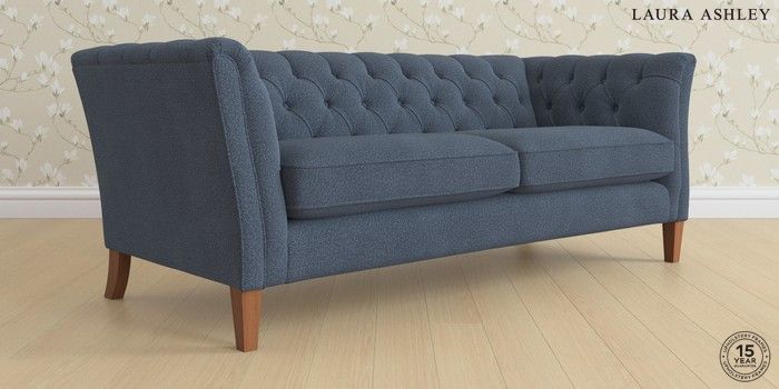 6.12.1 Buy Chatsworth Button Back by Laura Ashley 3 Seater Sofa Lundar Chenille Navy Blue Straight Mid - Teak from the Next UK online shop Click here to use our accessible website