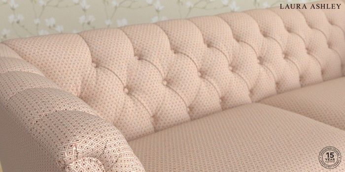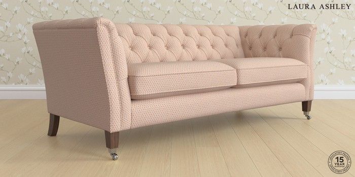 6.12.1 Buy Chatsworth Button Back by Laura Ashley 3 Seater Sofa Melbreak Geo Chalk Pink Straight Chrome Castor - Chestnut from the Next UK online shop Click here to use our accessible website