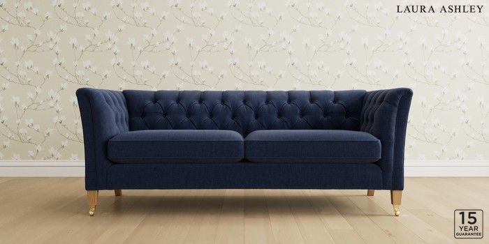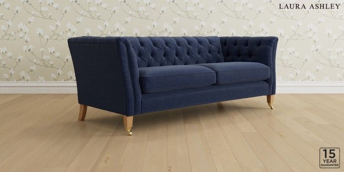 6.12.1 Buy Chatsworth Button Back by Laura Ashley 3 Seater Sofa Nantmor Midnight Navy Straight Brass Castor - Light Oak from the Next UK online shop Click here to use our accessible website