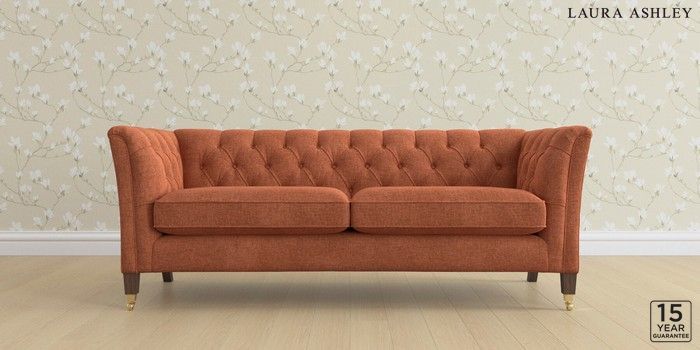 6.12.13 Buy Chatsworth Button Back by Laura Ashley 3 Seater Sofa Nantmor Rust Orange Straight Brass Castor - Chestnut from the Next UK online shop Click here to use our accessible website