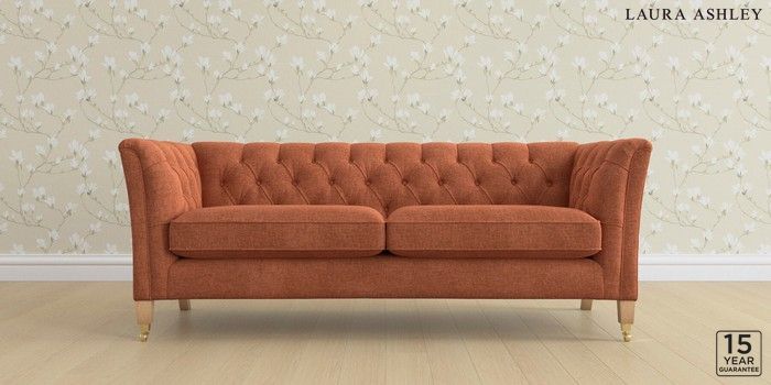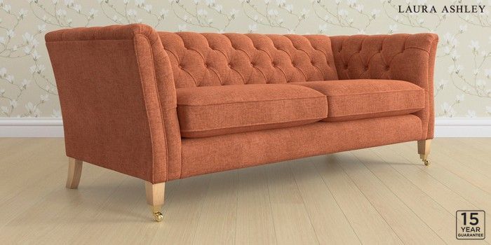 6.12.13 Buy Chatsworth Button Back by Laura Ashley 3 Seater Sofa Nantmor Rust Orange Straight Brass Castor - Light Oak from the Next UK online shop Click here to use our accessible website