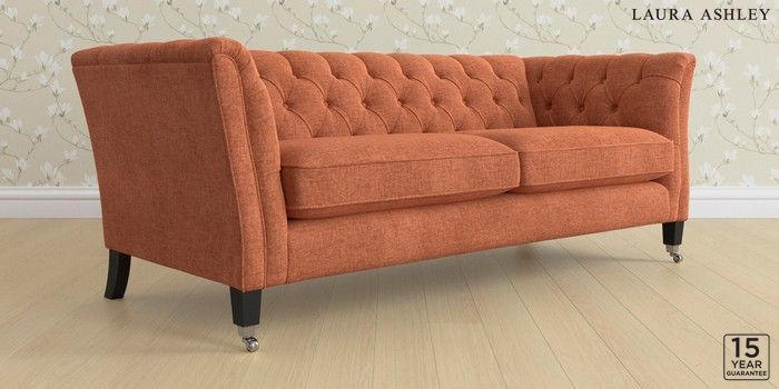 6.12.13 Buy Chatsworth Button Back by Laura Ashley 3 Seater Sofa Nantmor Rust Orange Straight Chrome Castor - Black from the Next UK online shop Click here to use our accessible website