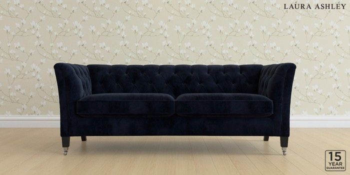 6.12.13 Buy Chatsworth Button Back by Laura Ashley 3 Seater Sofa Orla Midnight Navy Straight Chrome Castor - Black from the Next UK online shop Click here to use our accessible website