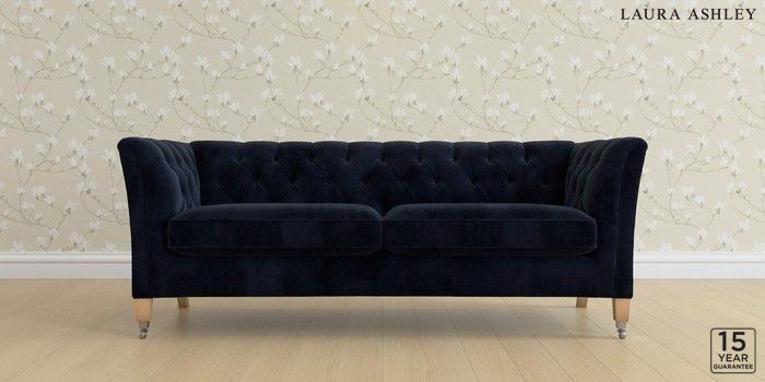 6.12.13 Buy Chatsworth Button Back by Laura Ashley 3 Seater Sofa Orla Midnight Navy Straight Chrome Castor - Light Oak from the Next UK online shop Click here to use our accessible website