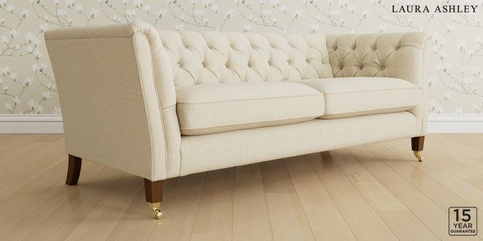 6.12.1 Buy Chatsworth Button Back by Laura Ashley 3 Seater Sofa Orla Oyster Natural Straight Brass Castor - Teak from the Next UK online shop Click here to use our accessible website