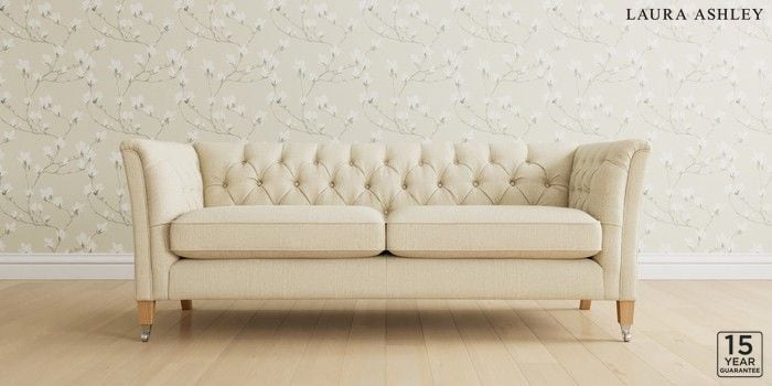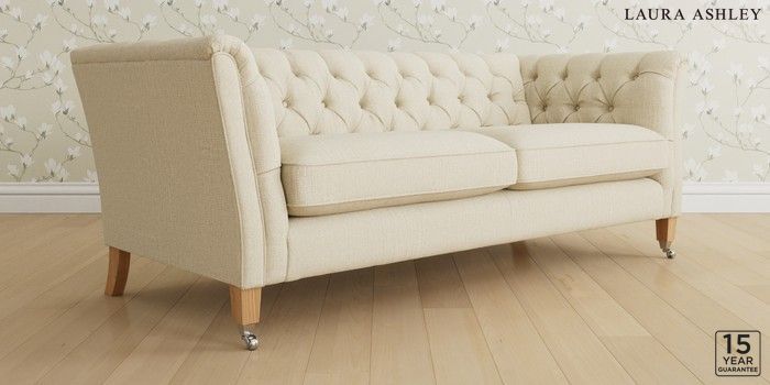 6.12.1 Buy Chatsworth Button Back by Laura Ashley 3 Seater Sofa Orla Oyster Natural Straight Chrome Castor - Light Oak from the Next UK online shop Click here to use our accessible website
