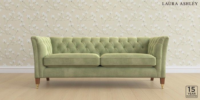 6.12.1 Buy Chatsworth Button Back by Laura Ashley 3 Seater Sofa Orla Pale Hedgerow Green Straight Brass Castor - Teak from the Next UK online shop Click here to use our accessible website